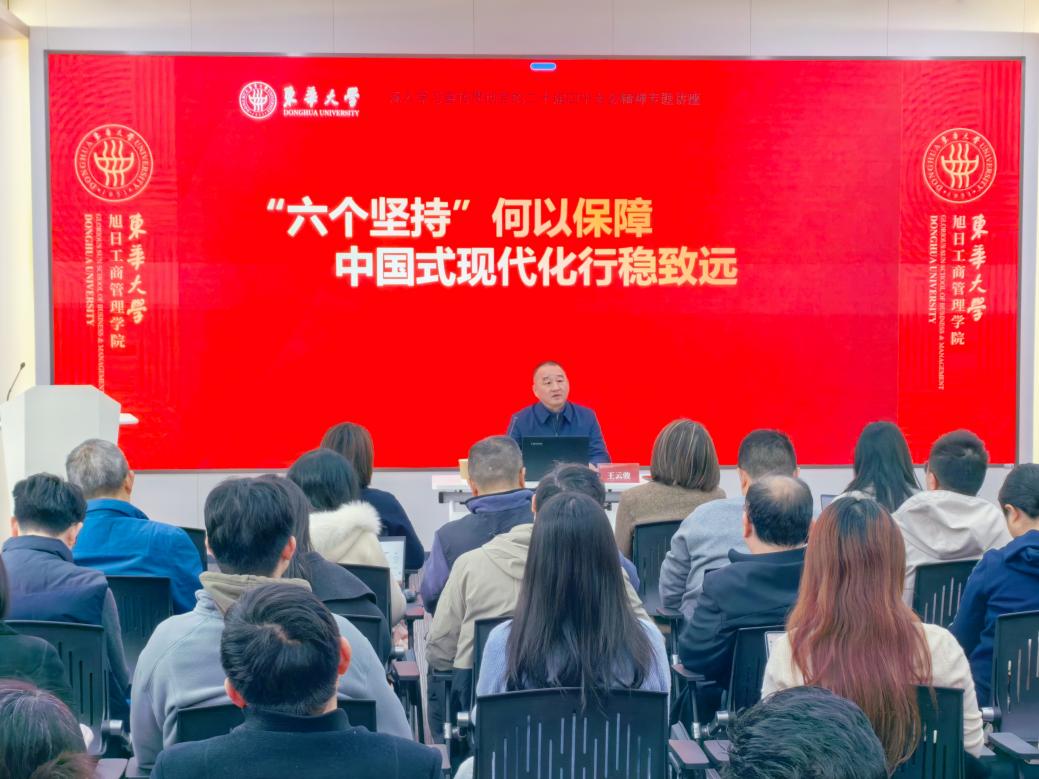 为深入学习贯彻党的二十届四中全会精神,1216日上午,成人动漫 在旭日楼100报告厅举办专题辅导报告会,邀请学习贯彻党的二十届四中全会精神宣讲团成员、成人动漫 原党委副书记、纪委书记王云骏教授作题为《“六个坚持”何以保障中国式现代化行稳致远》专题报告成人动漫 党员教师参加学习。