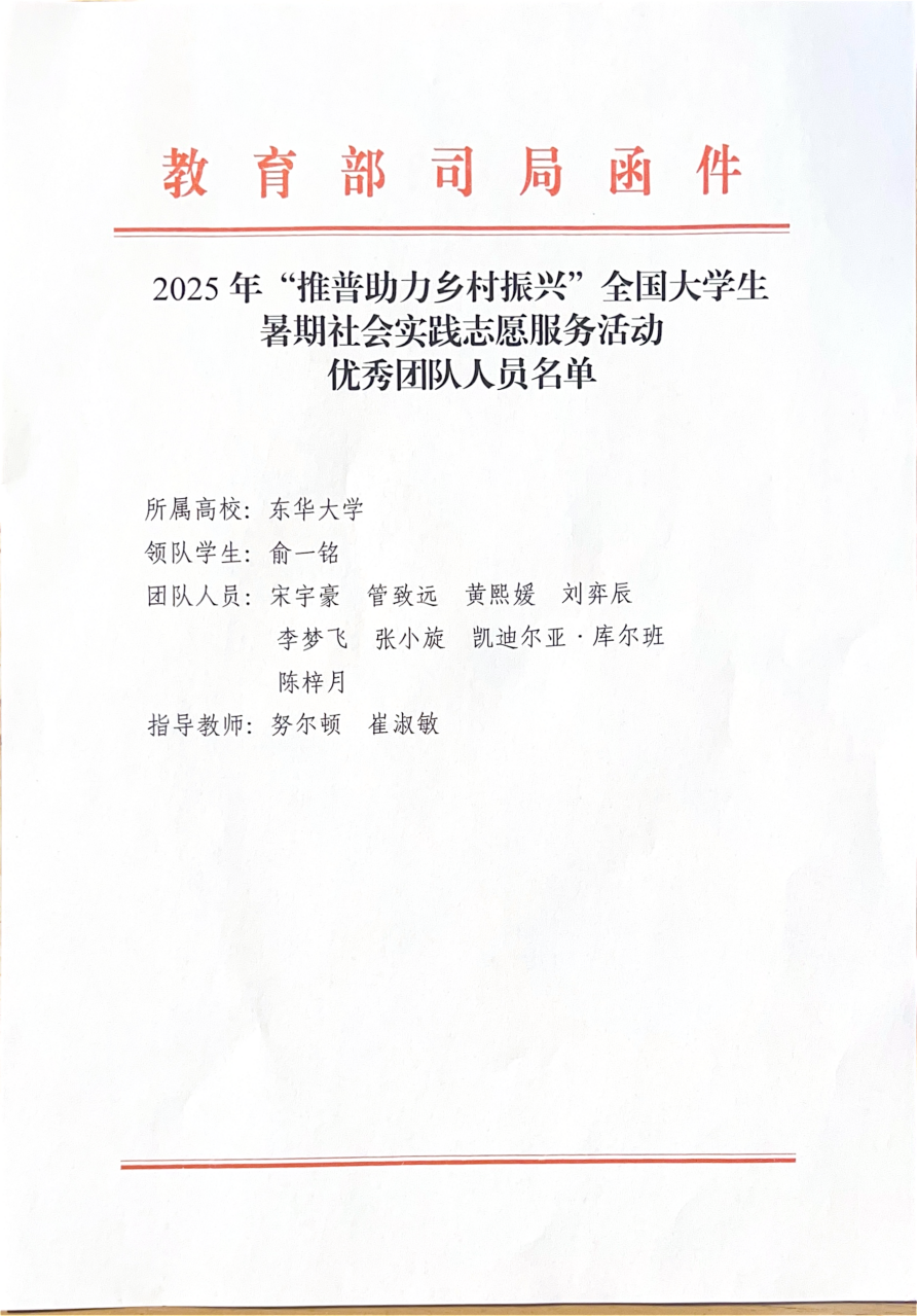 近日,2025年“推普助力乡村振兴”全国大学生暑期社会实践志愿服务活动“优秀团队”名单正式揭晓!成人动漫 成人动漫 “语润边疆·沪疆共育”实践团从全国2000支团队中脱颖而出,荣获全国“优秀团队”,获得教育部语言文字应用管理司与共青团中央青年发展部通报联合表扬。